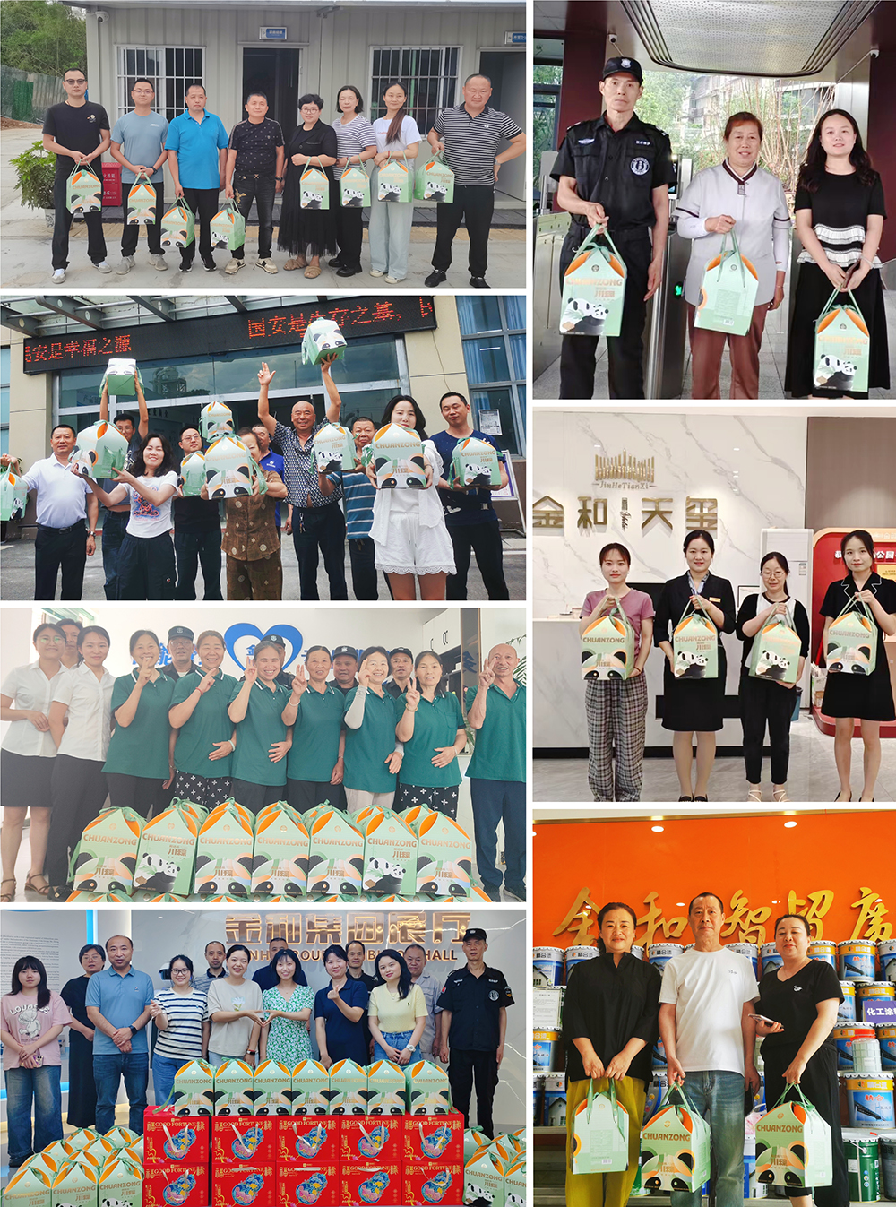 在綿陽(yáng)、科技城新區(qū)、經(jīng)開(kāi)區(qū)、鹽亭、江油,金和集團(tuán)總辦、金和云松臺(tái)及金和天璽項(xiàng)目部、金和建材公司、商管公司、恒增公司、物業(yè)公司職工,都收到了來(lái)自各工會(huì)發(fā)放的端午福利。發(fā)放現(xiàn)場(chǎng)職工們有序領(lǐng)取,洋溢著歡快氛圍。