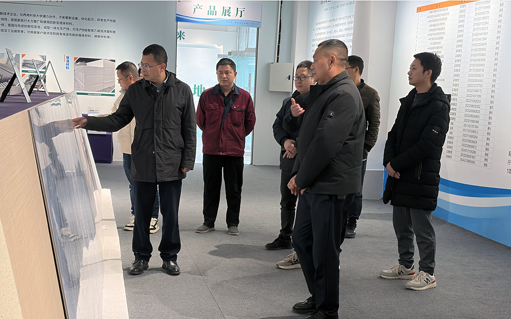 彭三高副縣長(zhǎng)一行先后參觀了公司展廳與即將竣工的合院樣板房,現(xiàn)場(chǎng)了解金和建材的產(chǎn)品體系及其在裝配式建筑中的創(chuàng)新應(yīng)用。在公司新建的保溫裝飾一體板生產(chǎn)車(chē)間,彭三高副縣長(zhǎng)實(shí)地了解產(chǎn)品生產(chǎn)流程、產(chǎn)能及發(fā)展規(guī)劃。