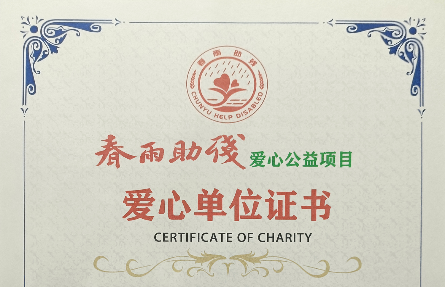 2023年5月,向“春雨助殘愛心公益項(xiàng)目”捐贈(zèng)愛心資金
